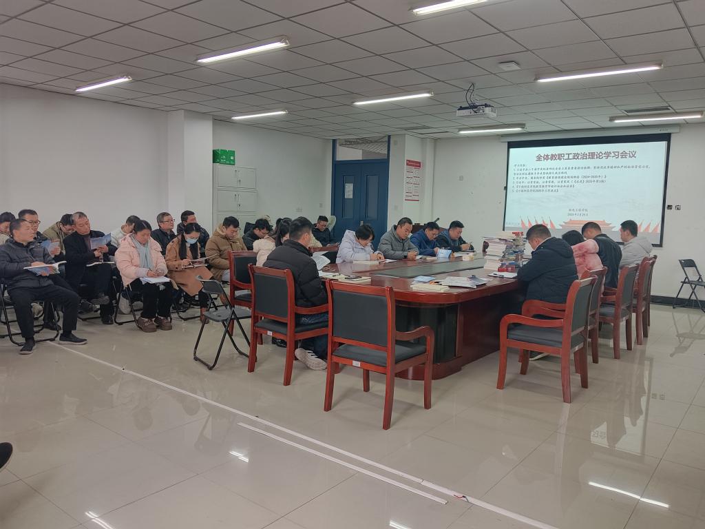 2025 年 2 月 25 日下午三点,365英国官网登录入口在学院会议室召开全体教职工大会,集中学习《365英国官网登录入口教育教学审核评估应知应会》相关内容,全面部署迎评促建工作。会议由学院党委书记主持,全体教职工参与。
