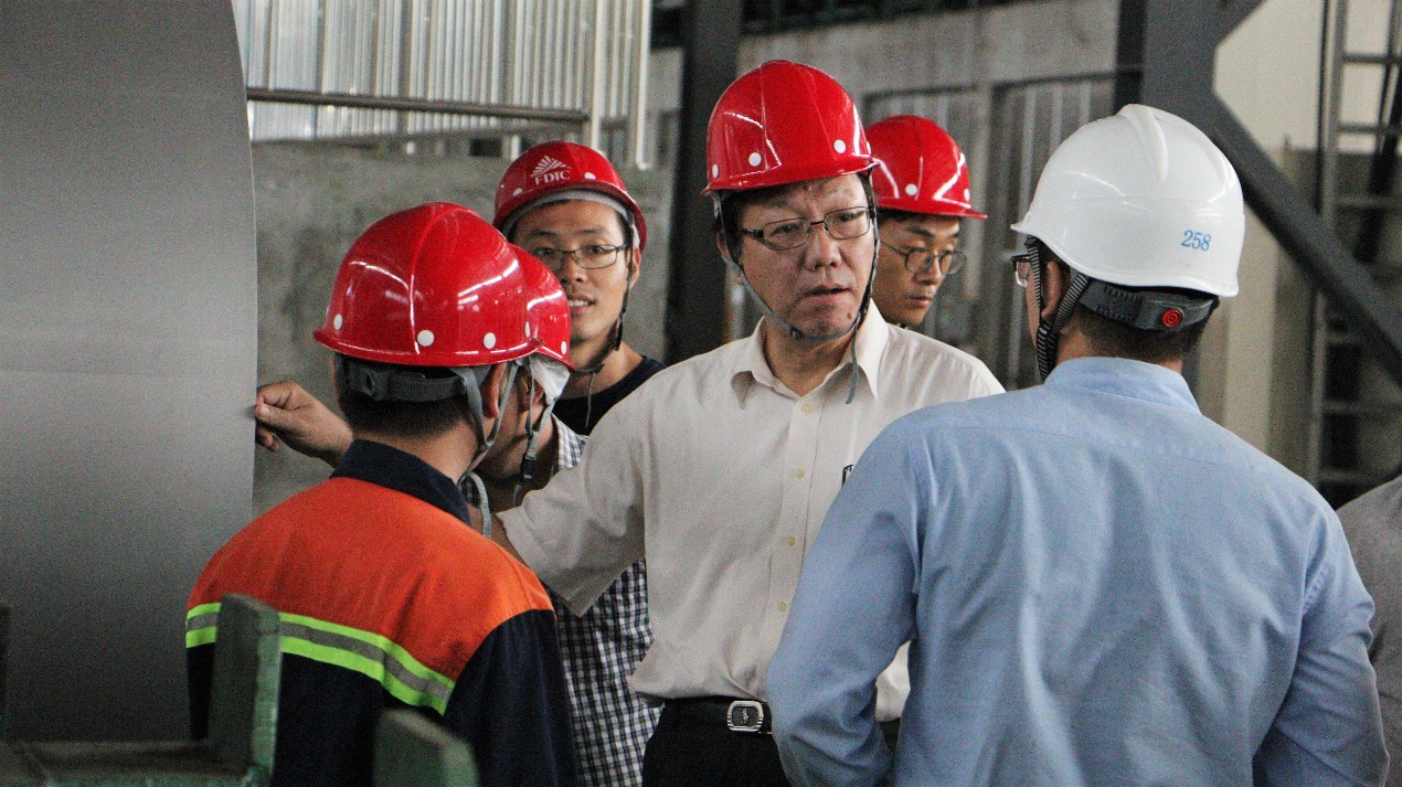 书记及院长一行人在青拓集团人力资源部刘永清部长的陪同下,先行参观了宏旺实业有限公司的生产车间,车间负责人向我院教师详细介绍了车间内不锈钢材的生产作业流程以及现今所使用的冷轧工艺。而后在甬金科技有限公司的生产车间,负责人介绍了其公司自主研发的轧机设备,该设备的性能可领先国际水平,提高作业效率。在车间样本展示区,负责人还向随行人员讲解公司所产钢材的特性。结束车间的实地参观学习后,众人先后参观了青拓物流的自建码头,青拓实业有限公司,青拓镍业有限公司等厂区。