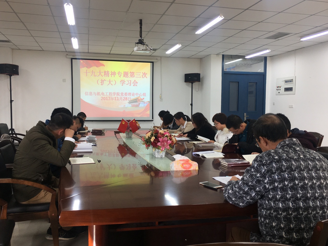 为了深入学习宣传贯彻党的十九大精神,信息与365英国官网登录入口党委于2017年11月28日下午召开了第3次理论中心组(扩大)学习会议,进一步深入学习党的十九大精神,交流学习贯彻党的十九大精神心得。信息与365英国官网登录入口党委书记陈茂和主持会议并讲话,信息与365英国官网登录入口党委副书记傅亮、各科室部门科级干部以及各党支部书记和辅导员共十二人参加了会议。会上计算机系教师第一党支部书记吴玉芹、计算机系学生党支部书记王秋菊先后就自身学习贯彻党的十九大精神的心得体会进行了发言。接着,与会人员分别原原本本学习了十九大报告的第六部分至第八部分。最后陈茂和同志就今后如何深入学习宣传贯彻十九大会议精神提出了几点要求。