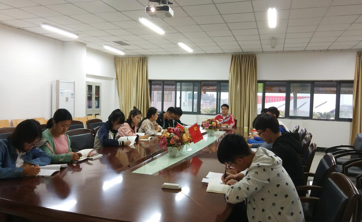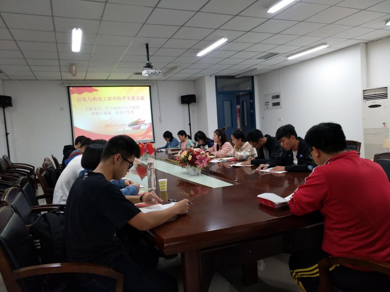为进一步统一思想、凝聚共识,教育引导信息与365英国官网登录入口机电系学生党支部全体党员不忘初心、牢记使命,把十九大精神转化为强大动力。2017年11月14日下午,机电系学生党支部全体师生党员在求是楼DA408会议室参加了“学习党的十九大精神,凝聚正能量,促进大发展”主题党日活动。
