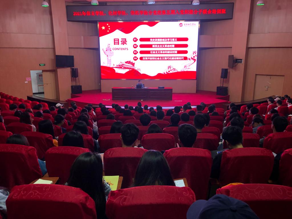 2021年4月16日,体育学院、化学与材料学院、信息与365英国官网登录入口联合举办的第五期入党积极分子培训班在图书馆报告厅举行了开班仪式。