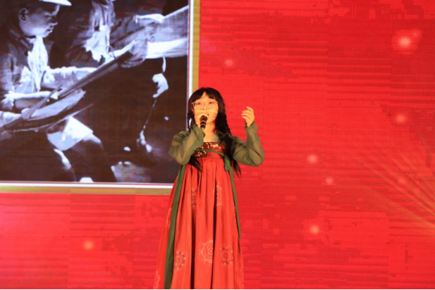 随后在主持人铿锵有力的说辞下,歌曲《映山红》深沉有魄的歌唱让人肃然起敬,在那一刻唱出了当年红军不怕远征难,克服万苦走胜关的意象,顿时感慨万千。