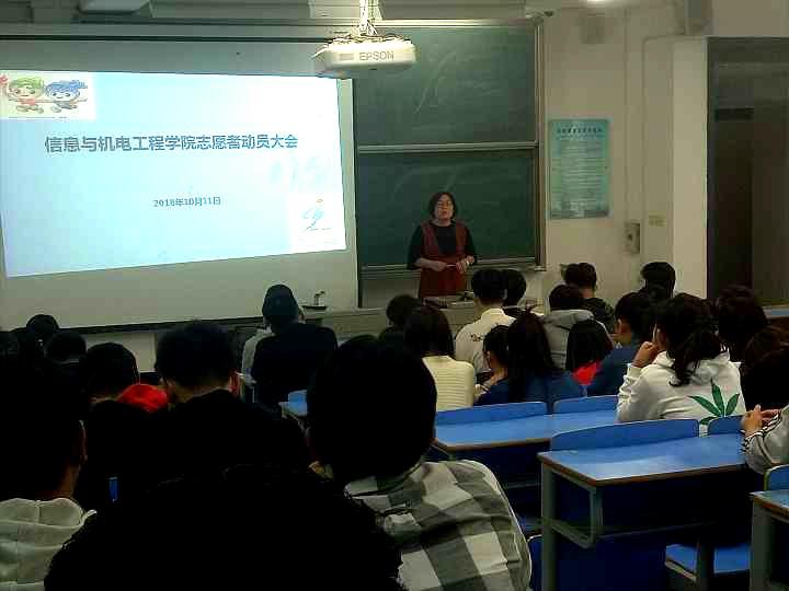 福建省第十六届运动会开幕之际,为做好志愿服务工作,2018年10月11日信息与365英国官网登录入口召开竞赛志愿者动员大会,志愿者带队老师、院党委秘书卓敏老师,院团委负责人王秋菊老师及134名赛会志愿者出席了会议。