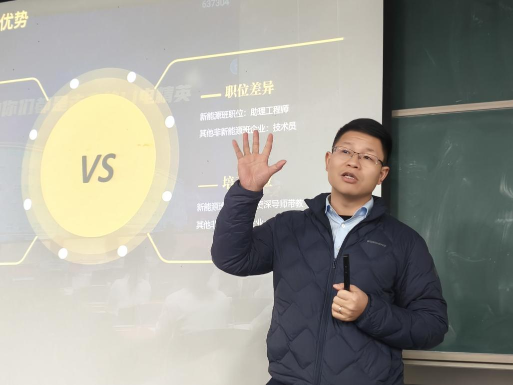 企业ME智造工程部高级经理夏汉喜结合自身从业经验,聚焦部门核心业务展开分享。他细致讲解了ME部门在生产设备运维、工艺优化、效率提升等方面的主要工作内容,明确了岗位对专业技能、责任意识与创新思维的要求。同时,夏总以真实案例分享了自身职业成长心得,鼓励同学们在校期间扎实掌握专业基础,培养严谨务实的工作态度,为未来投身新能源产业筑牢根基。